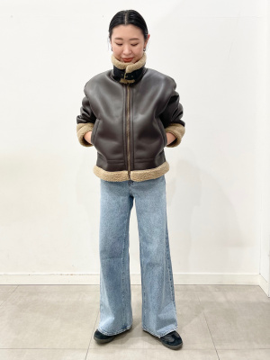 美品 GU ジーユー フェイクムートンショートフライトジャケット ブラウン XL GU ジーユー フェイクムートンショートフライトジャケット XL